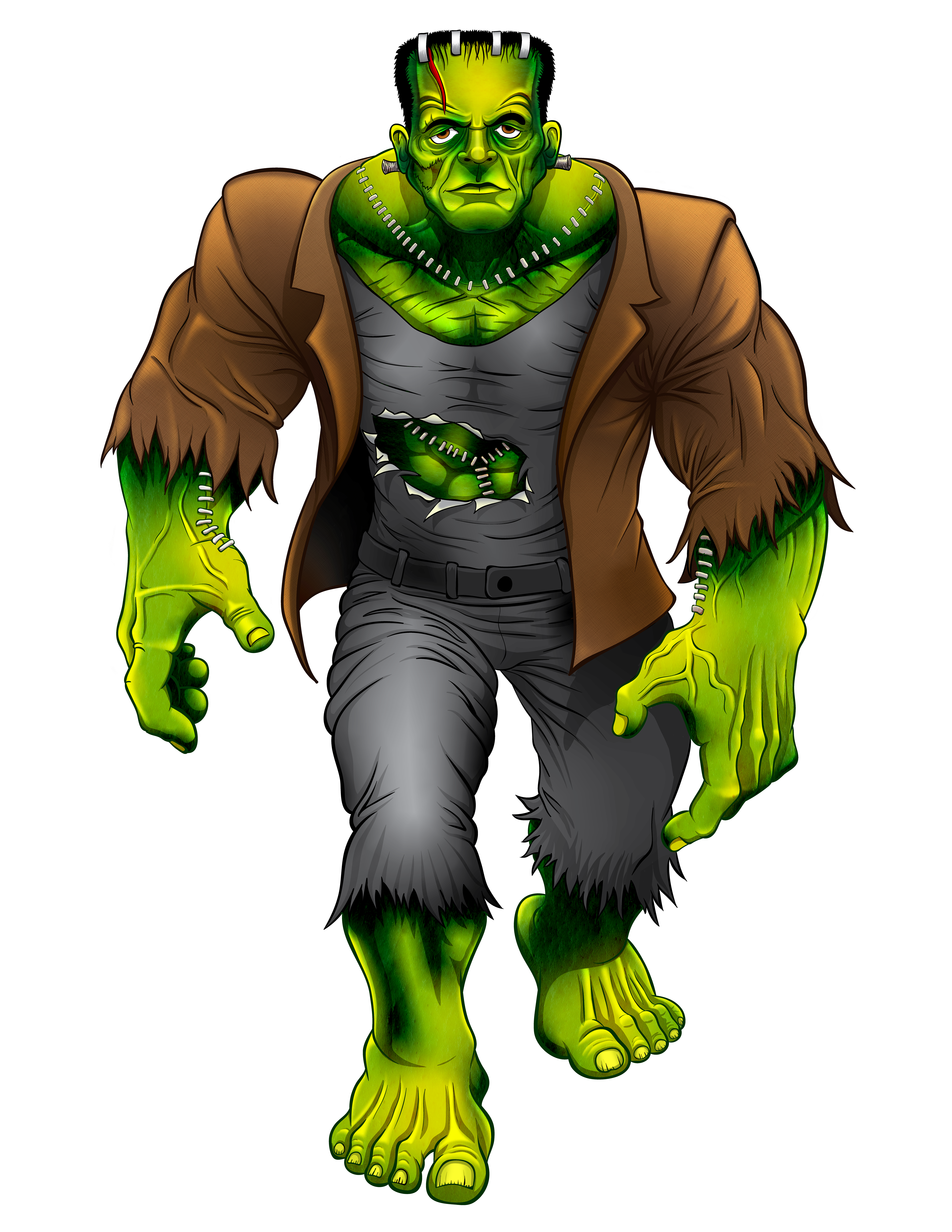 una versión de frankenstein fusionado con hulk, diseño elaborado para decorar una camiseta